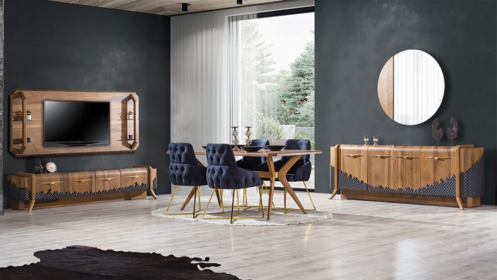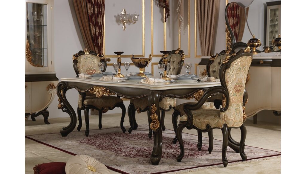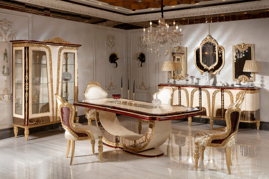 Tamamı doğal ahşaptan, eşçiliği ile üretilmiş yemek odası modelleri ile evinizde lüks bir hava sağlayabilirsiniz. Asortie olarak, yaşam alanlarınızda klasik ve lüks dekorasyondan vazgeçmeyenler için en özel modeller ile harika sofralar kurabileceğiniz lüks yemek odası modellerimizi sizin hayallerinizin ötesinden üretmek için özen göstermekteyiz.